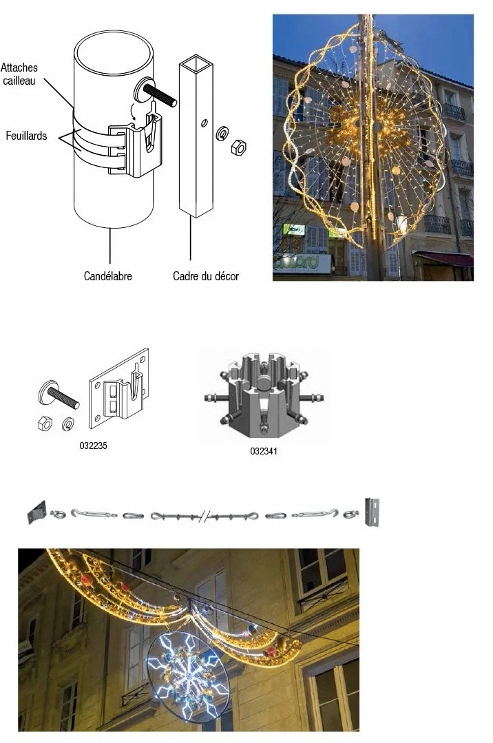 Decorations for pole mounted decorations: elegant and practical, they come complete with fixings and can be installed directly on existing lighting poles. All you need to do is supply the stainless steel collars.